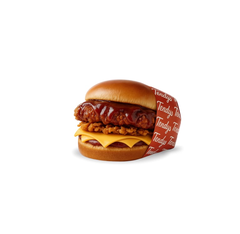 2 tenders bañados en BBQ, cebolla crispy y cheddar en pan brioche.
